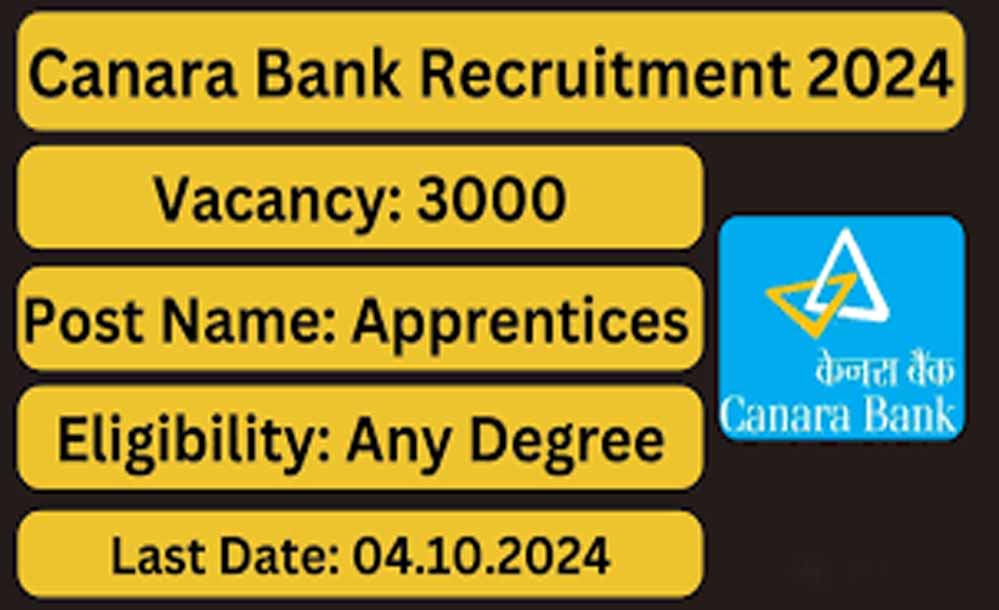 केनरा बैंक ने निकली बंपर वैकेंसी, 3000 पदों के लिए 21 सितंबर से करें अप्लाई