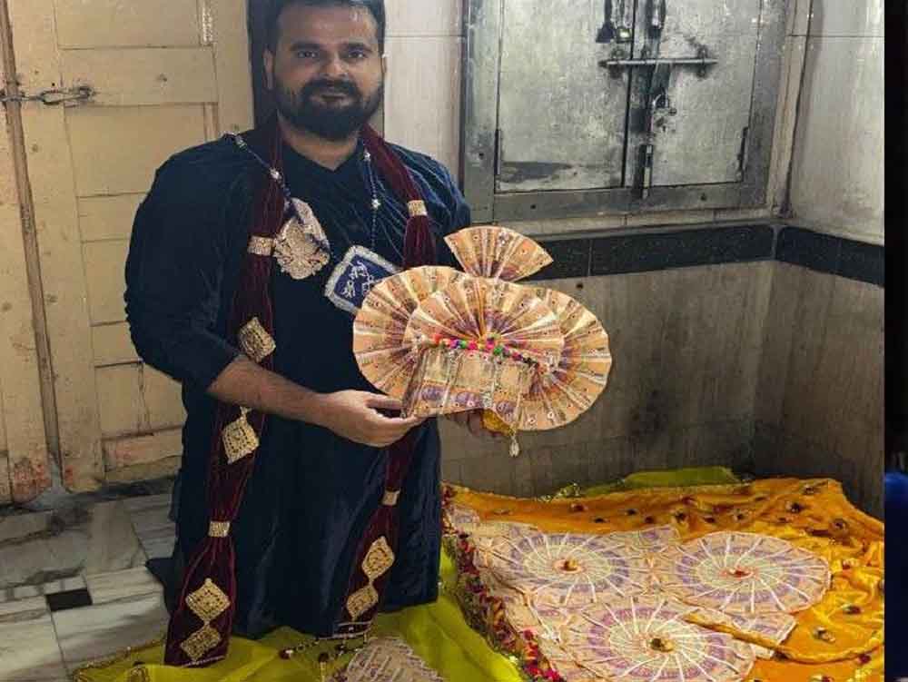 राजस्थान के भक्त ने की डोनेशन, बांके बिहारी मंदिर में 200 रुपये के नोटों से बनी ड्रेस चढ़ाई