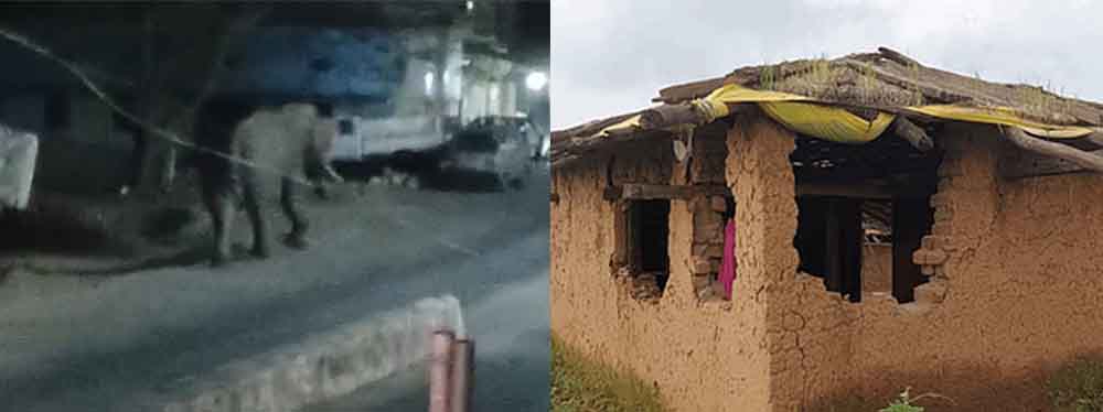 छत्तीसगढ़-रायगढ़ में दंतैल हाथियों ने दो मकानों को तोड़ा, इलाके में 15 से अधिक हाथियों की दहशत
