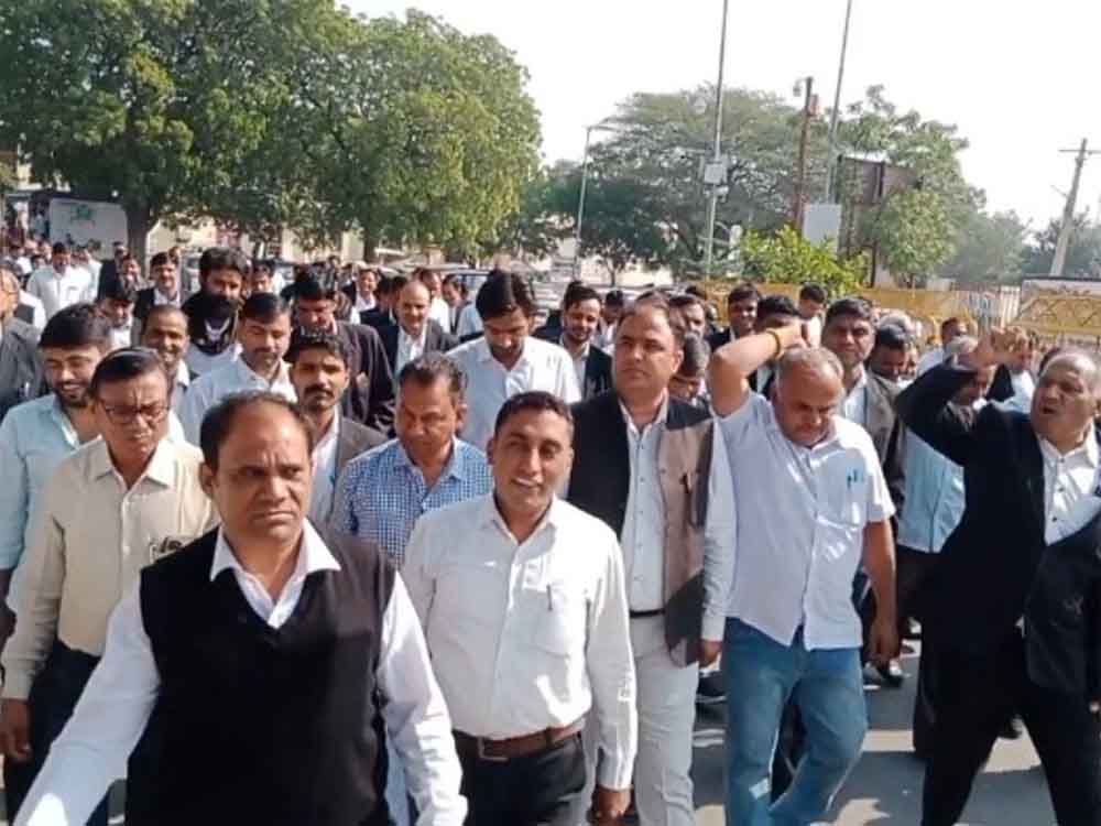 राजस्थान-झुंझुनू में वकीलों ने कोर्ट परिसर से कलेक्ट्रेट तक निकाली रैली, थानाधिकारी को निलंबित करने की मांग